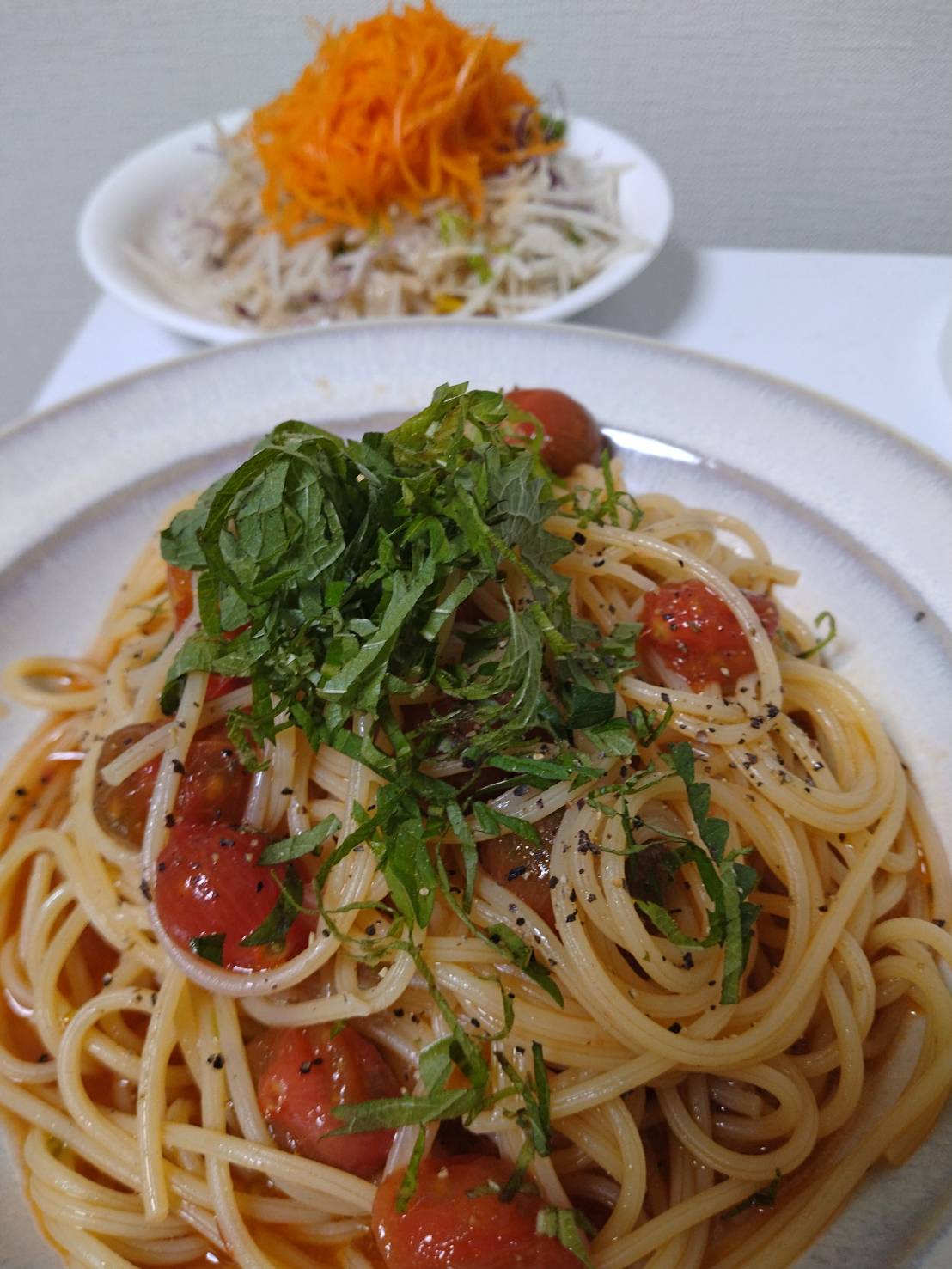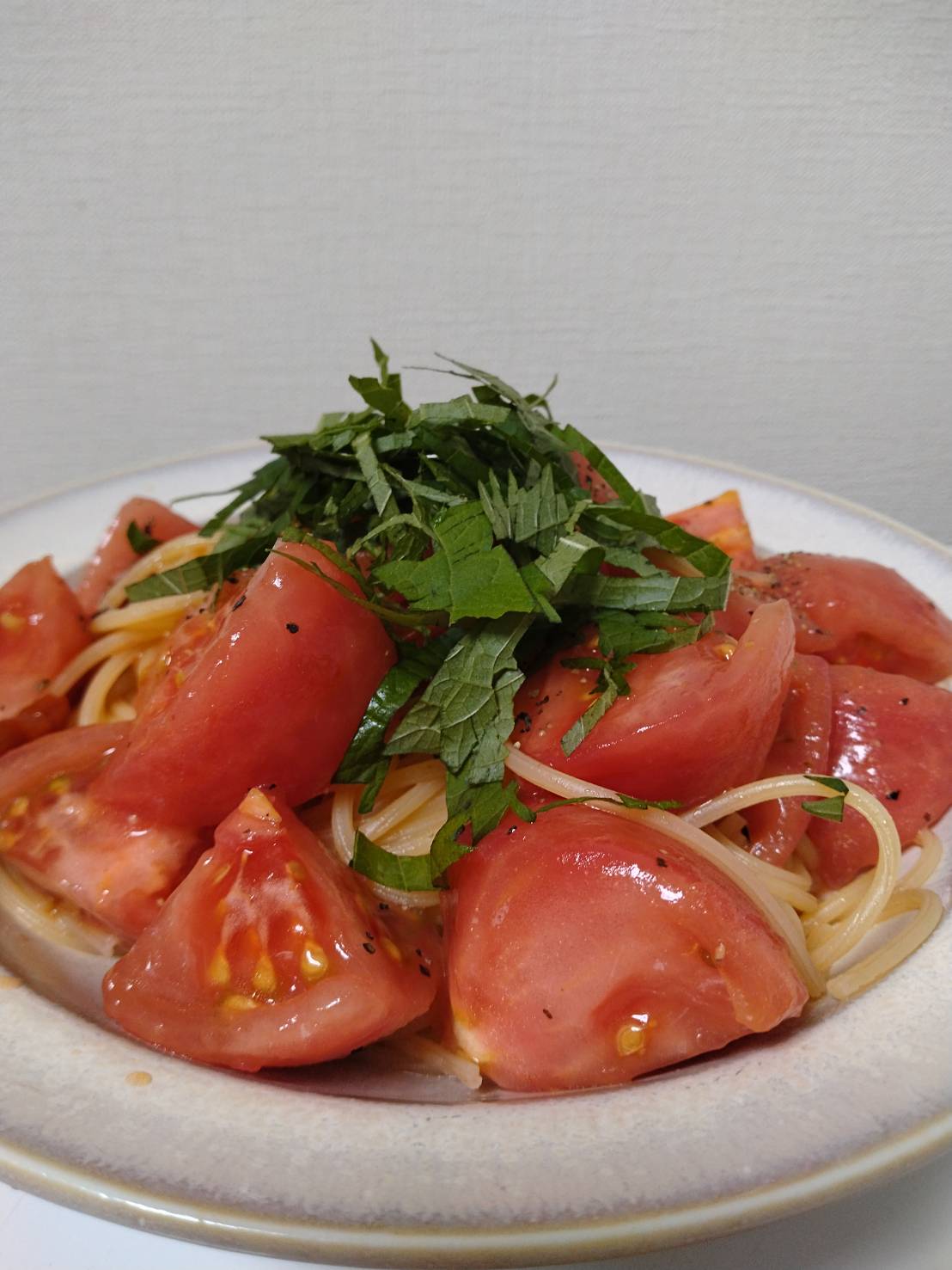オイル漬けのトマトと大玉トマト1玉、大葉があるので完璧でした笑